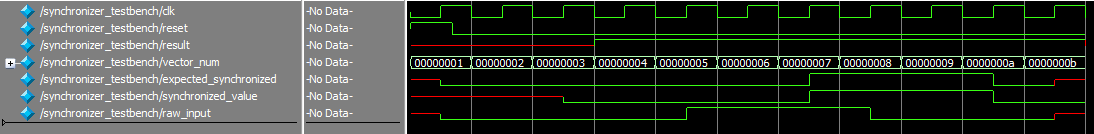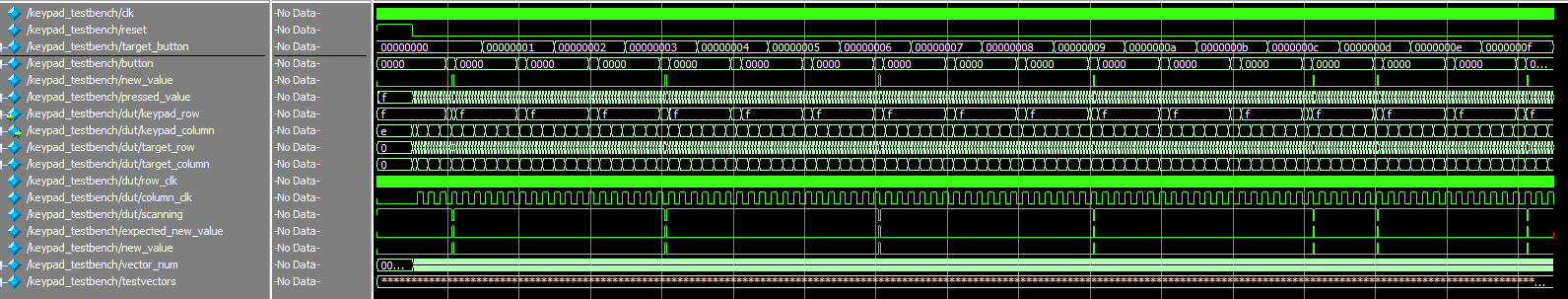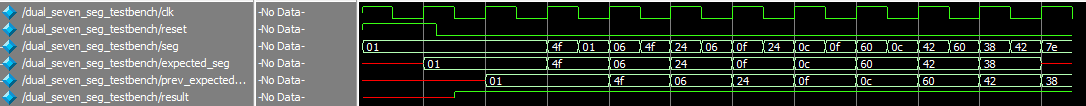 The testbenches were used to confirm that the clk counter correctly triggers, the debouncer properly debounces, the dual segment display correctly displays both values, the synchronizer correctly passes through the values, and that the debugging leds in the top module work as expected.
