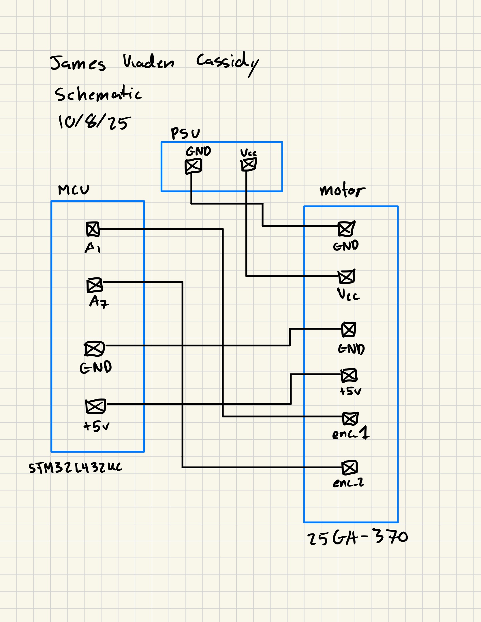 The schematic gives the design of the circuit breadboarded, essentiall the motor is just connected to power and to the MCU.